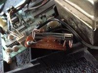 After discharging the device I went to work. I ripped the fuse out with pliers, and went to solder on the fuse… only then noticing I had forgotten wire.